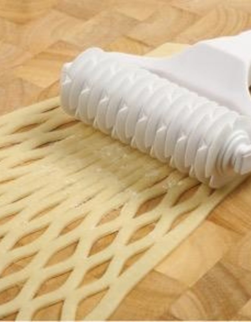 • Roll lattice cutter over a flat piece of pastry, left to right, then the other way, top to bottom