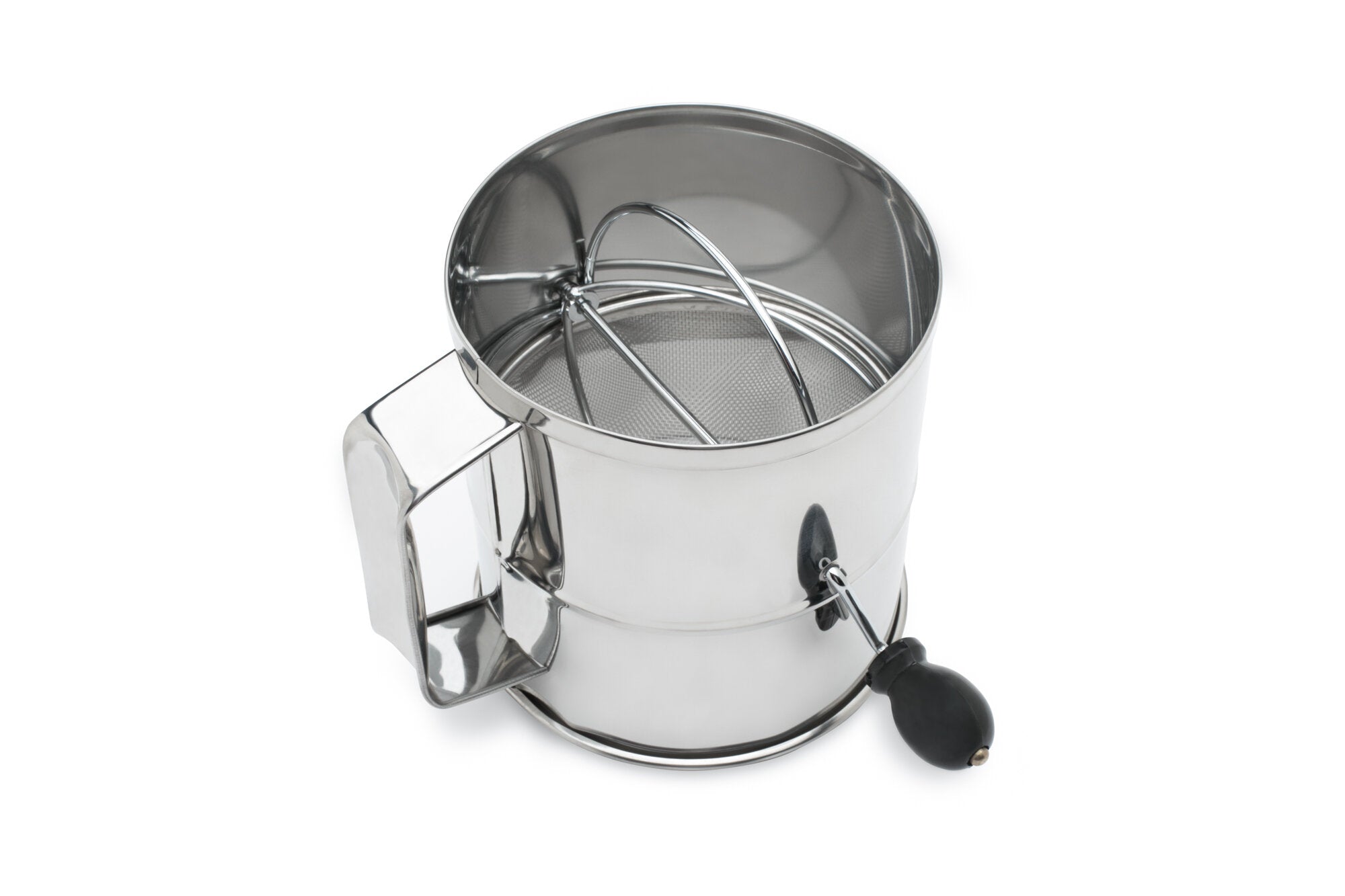 - Easy to use: simply turn the crank handle to deploy the sifter inside.