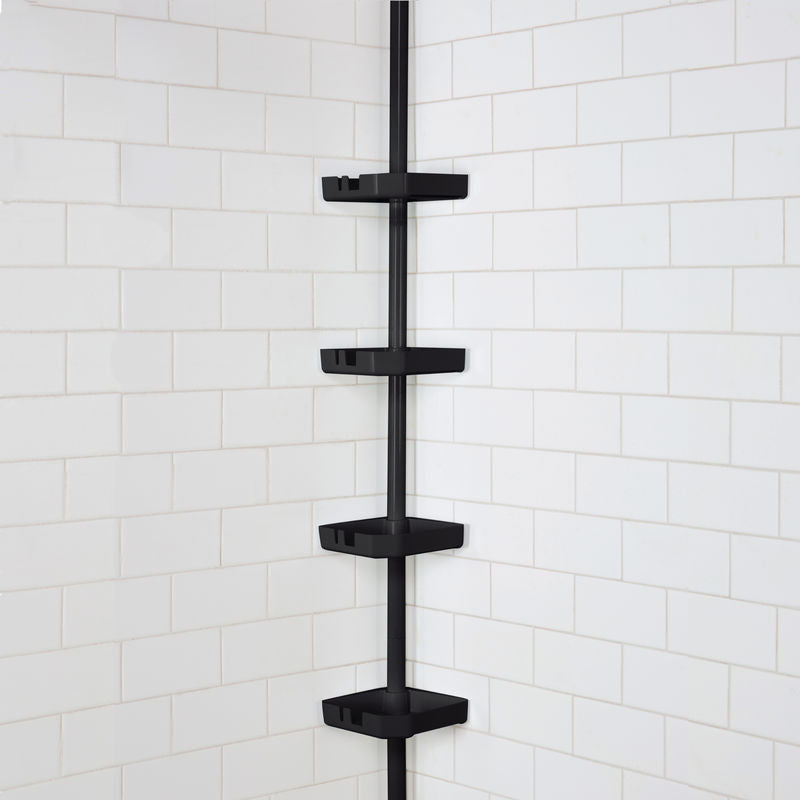 This shower caddy has convenient shape of shelves allows caddy to provide space-efficient storage in corner of shower or bathtub. It helps organize your bath essentials in a corner of your shower or bath tub.