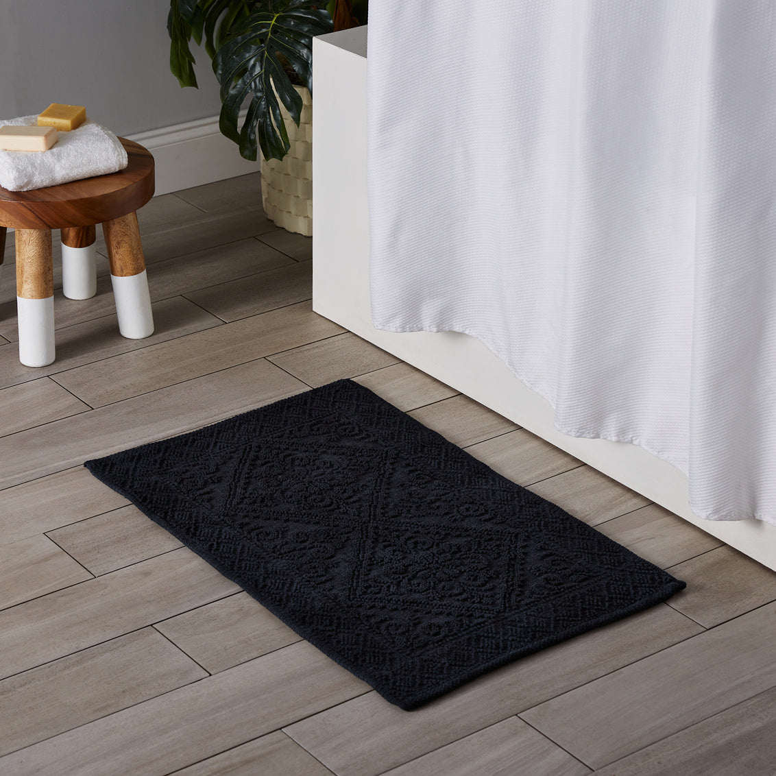 - This luxurious bathmat features an intricate jacquard pattern, adding a touch of elegance to your bathroom decor.