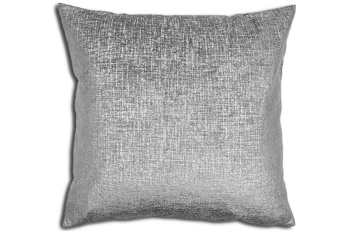 Metallics add instant glamour that surpasses all the gold and silver in Fort Knox! This silver cushion measures 18"x18", is made of 100% polyester velvet, and comes with a polyester filled cushion insert. Spot clean recommended.