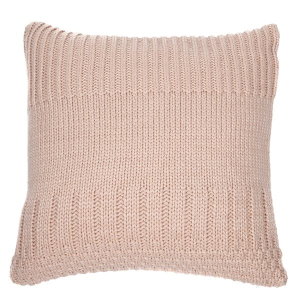 - Soft pink knit cushion with embossed details