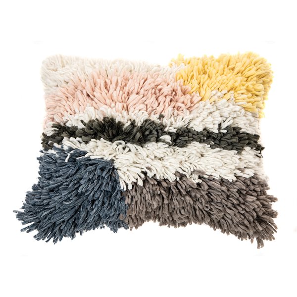 - Pink, blue, yellow, white and gray textured decorative pillow