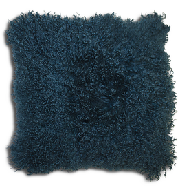 Thick and plush Tibetan lamb wool’s corkscrew curls in dark blue is sure to make a fluffy statement! These super soft cushions are made of 100% lambs wool on the cover front and 100% polyester faux suede on the back side. Measures 16"x16" and come with a polyester filled cushion insert. Spot clean recommended.