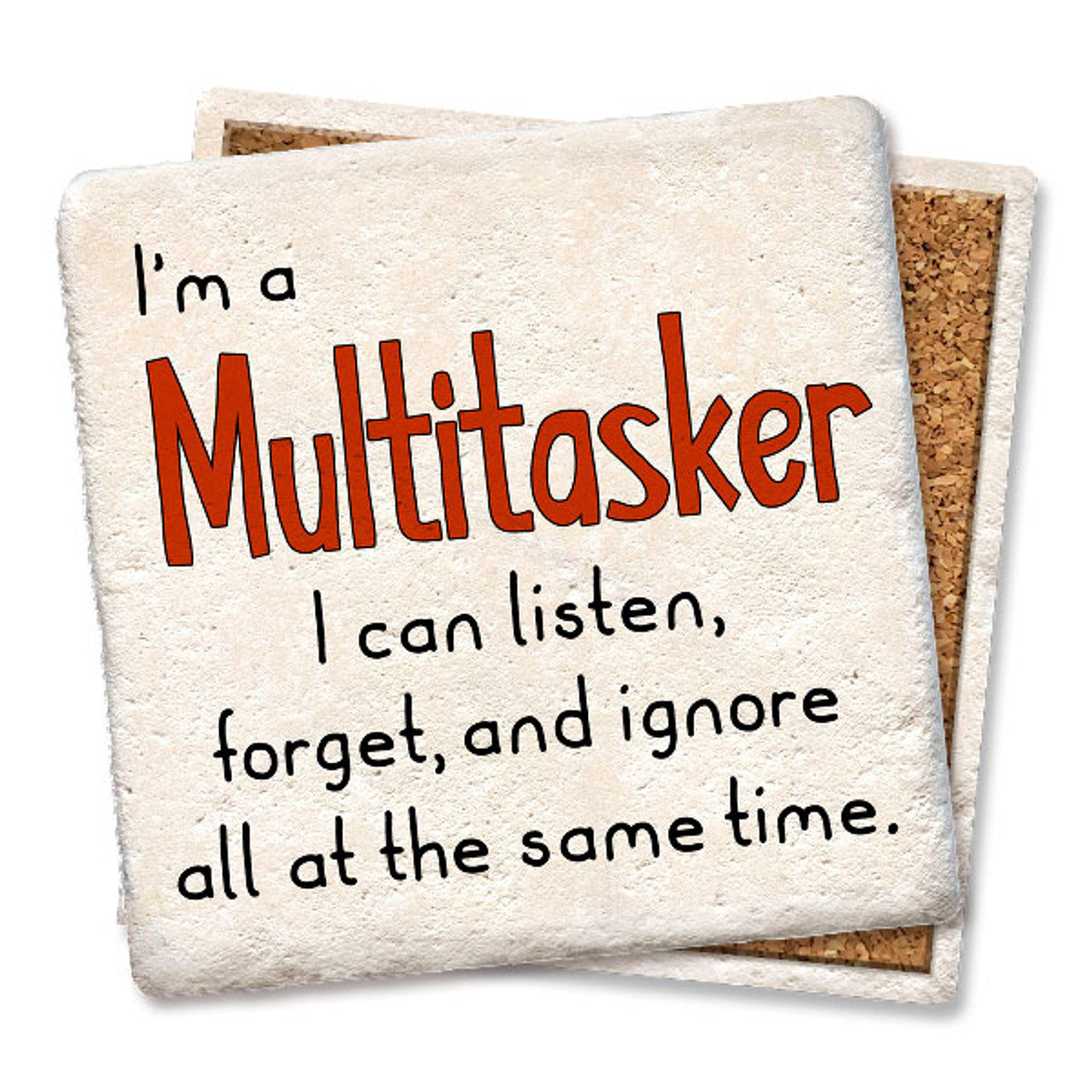 Funny and absorbent 4″ x 4″ coaster. Condensation disappears before your eyes! Printed with high-res graphics and humorous sayings that won’t fade or wear off. Made in America of smooth, thin, lightweight ceramic with full-coverage cork backing.