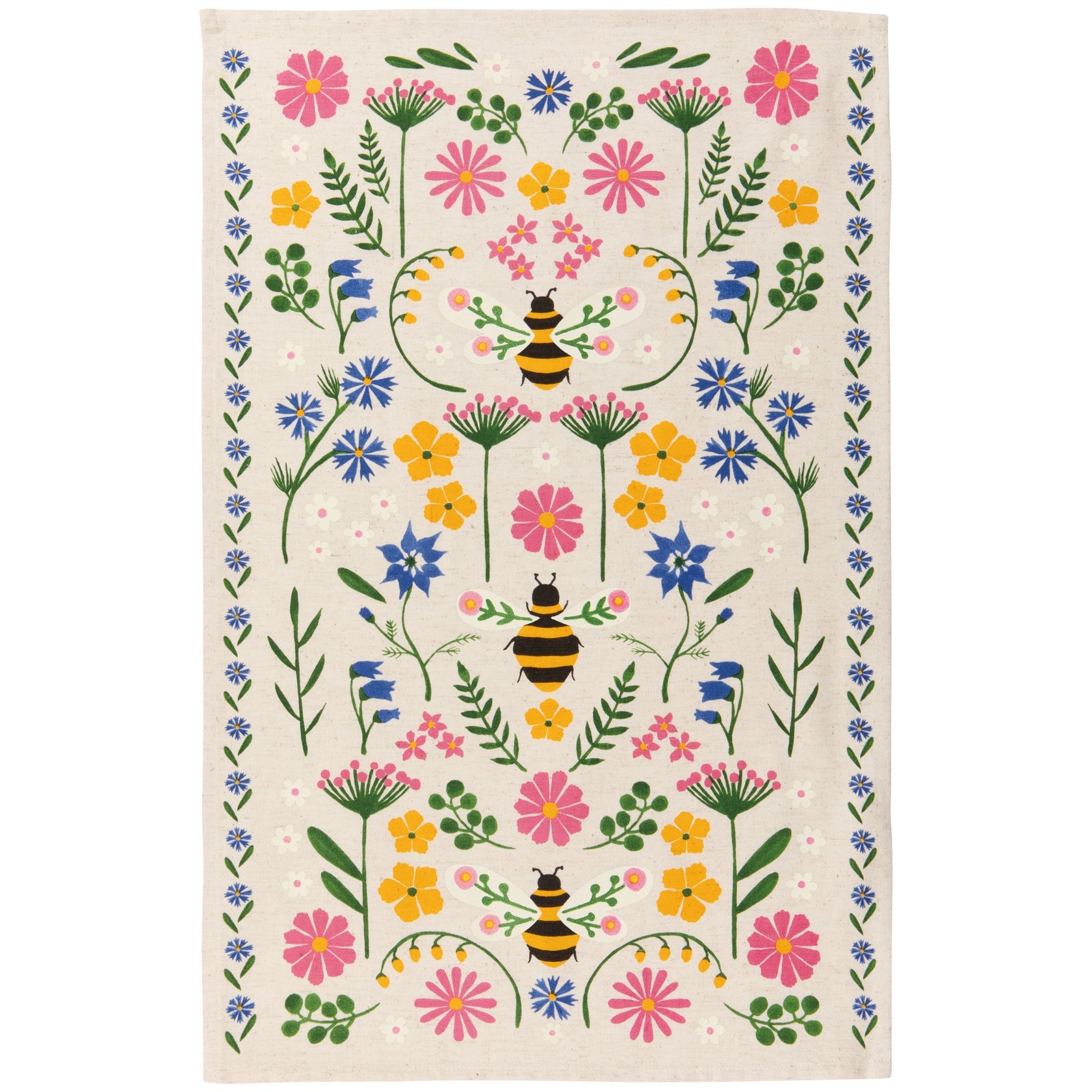 Add life and character to your kitchen with our fun and colorful printed cotton Bee Garden dishtowel. A perfect combination of form and function, this towel will make washing up less of a chore. Our Bee Garden collection pays tribute to nature's essential helpers. With a folk art-inspired design featuring bees buzzing among the wildflowers, this cheerful dishtowel brings garden-fresh delight to your space. Symmetry highlights the natural harmony of pollinators and plants.
