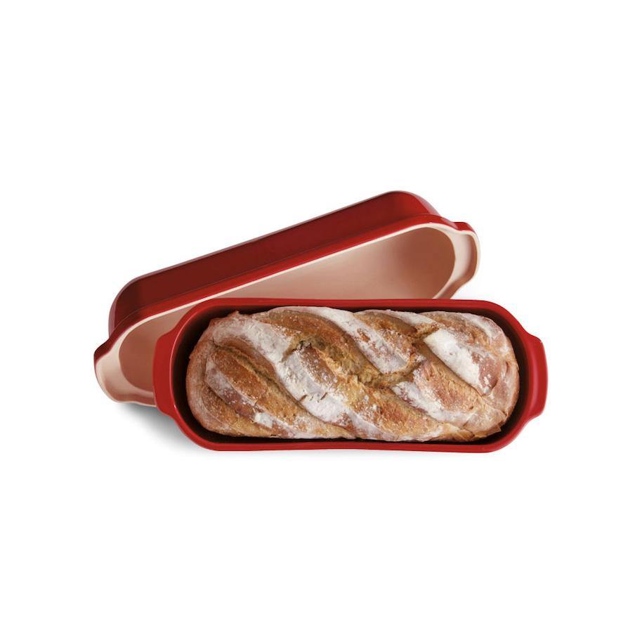Thanks to the domed lid made from refractory ceramic, the Baker creates the same conditions as a traditional bread oven, with the right level of humidity during the baking process to get a golden, crispy crust with a soft, airy inside. The ribs on the bottom prevent the loaf from sticking, and the small handles make it easy to manipulate, even when hot.