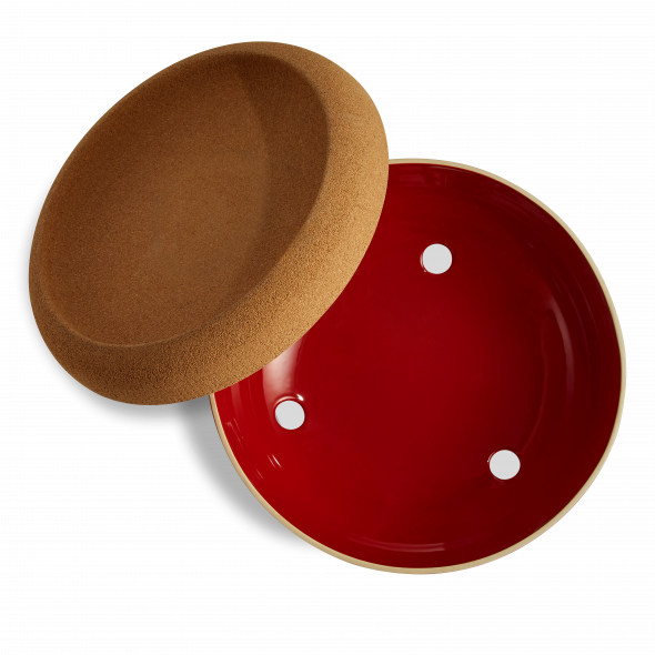 The natural properties of the cork help preserve the fruit and keeps pesky fruit flies at bay. The ceramic body keeps the light out, while the holes in the bowl help for air circulation, and together with the insulating properties of the cork lid, maintain a constant temperature, much like an old school cellar.