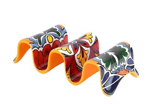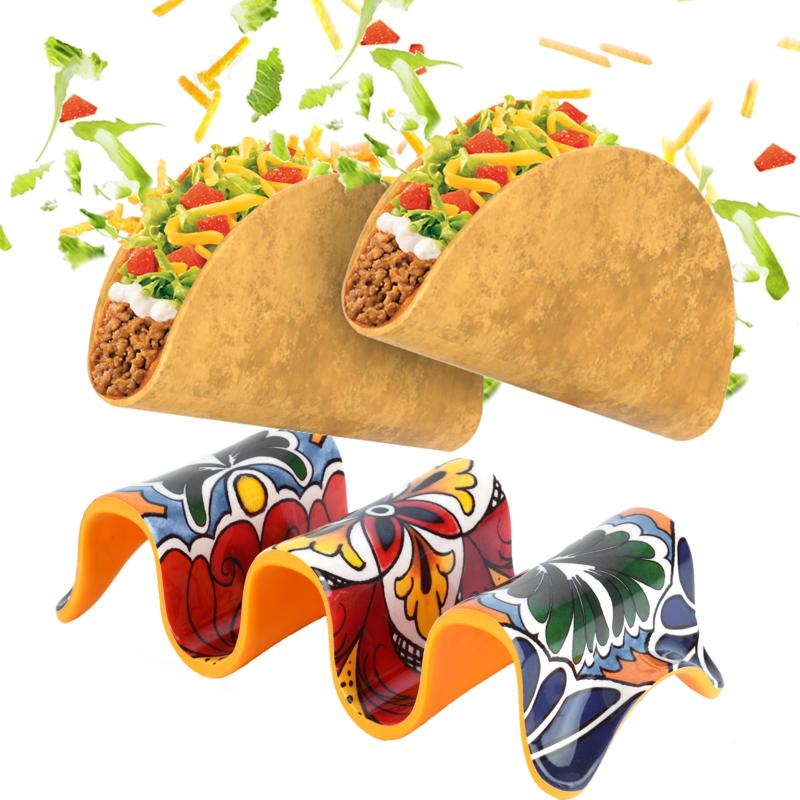 Reversible shape supports 2 or 3 tacos for easy filling and eating.