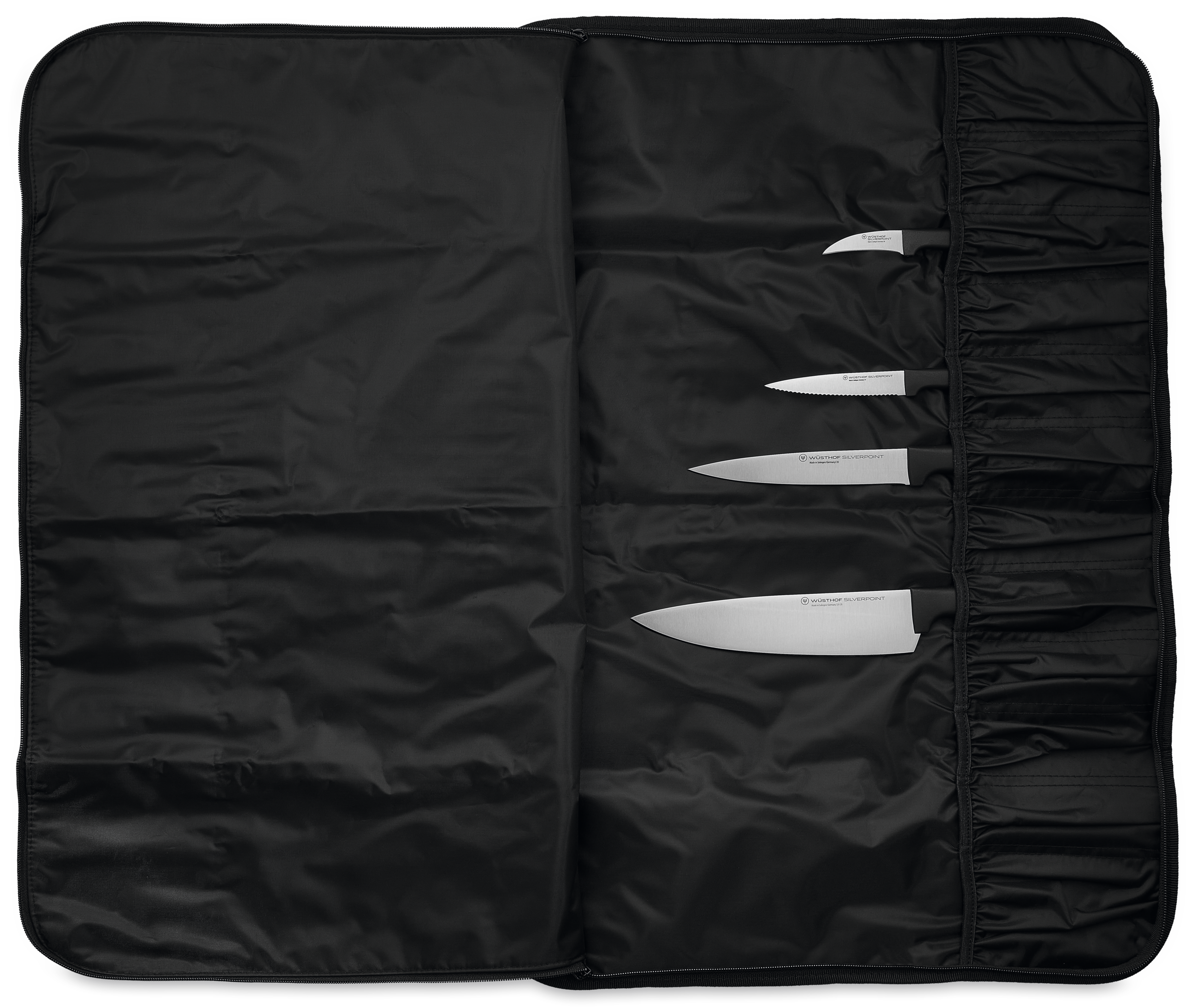 The WÜSTHOF 12-Slot Knife Case is the perfect companion for cooking in different places. The hard-wearing textile fabric is tear and abrasion resistant and offers space for up to 10 knives and accessories - up to a blade length of 32 cm (12.5"). With handle and separate carrying strap for easy transport.
