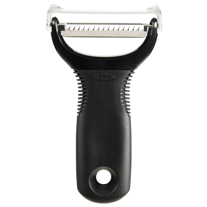 - Julienne peeler, 5.5"/14cm, black, stainless steel.Sharp, stainless steel blades easily create julienne strips.