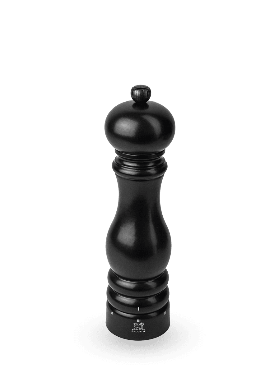 Every single detail of the Paris pepper mill has been designed to meet the requirements of fine-dining enthusiasts. The wood used for this French-made mill is sourced from local sustainably managed forests. The ring on the base is used to accurately adjust the pepper grind size. A coarse grind will reveal the pepper's full aromas, while a fine grind will unleash an intense burst of heat. With its black satin finish, this mill is a must-have.