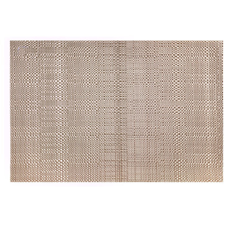 This placemat features a stylish woven pattern. Can be used indoors and outdoors. Easy care, simply clean with a damp cloth. Made of vinyl.