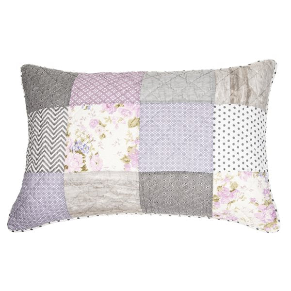 Authentic patchwork quilt in shades of lilac, taupe, dark grey and ivory. It is made of 100% quilted cotton. This is machine washable. Wash with cold water on delicate cycle with gentle detergent, do not bleach. Machine dry on gentle cycle and remove promptly to avoid excess wrinkles. Iron on low heat if needed.