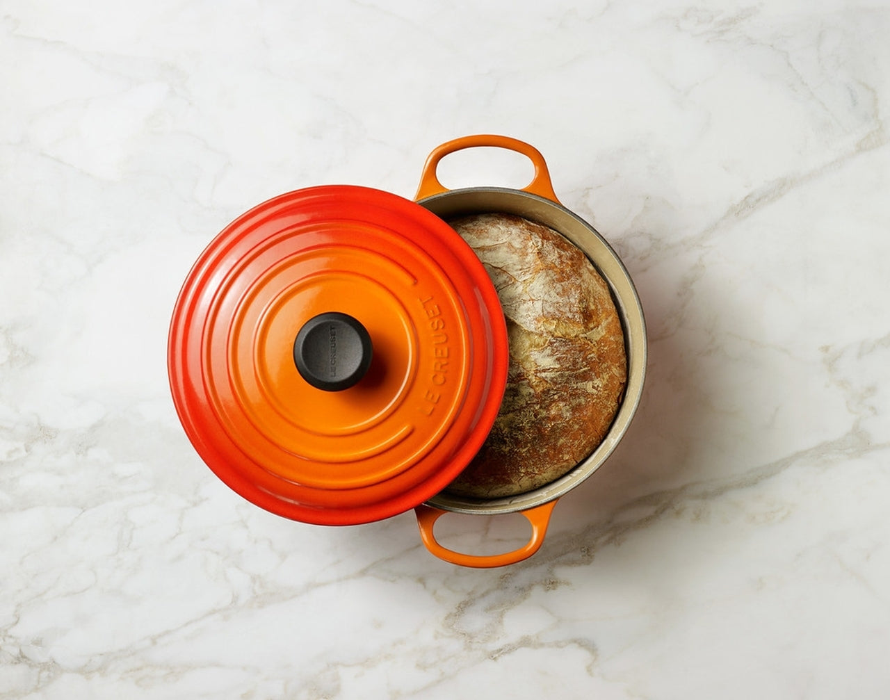 Le Creuset Enameled Cast Iron cookware has been the world's quality benchmark for almost a century. Each piece is cast individually in sand molds and hand inspected by French artisans. The iconic cookware is beloved for both its chip-resistant enamel exterior, its tight fitting lid and superior heat retention that locks in flavour and keeps food moist and tender.