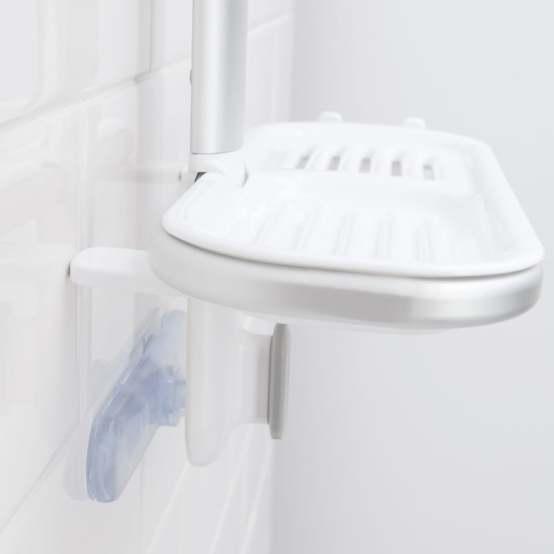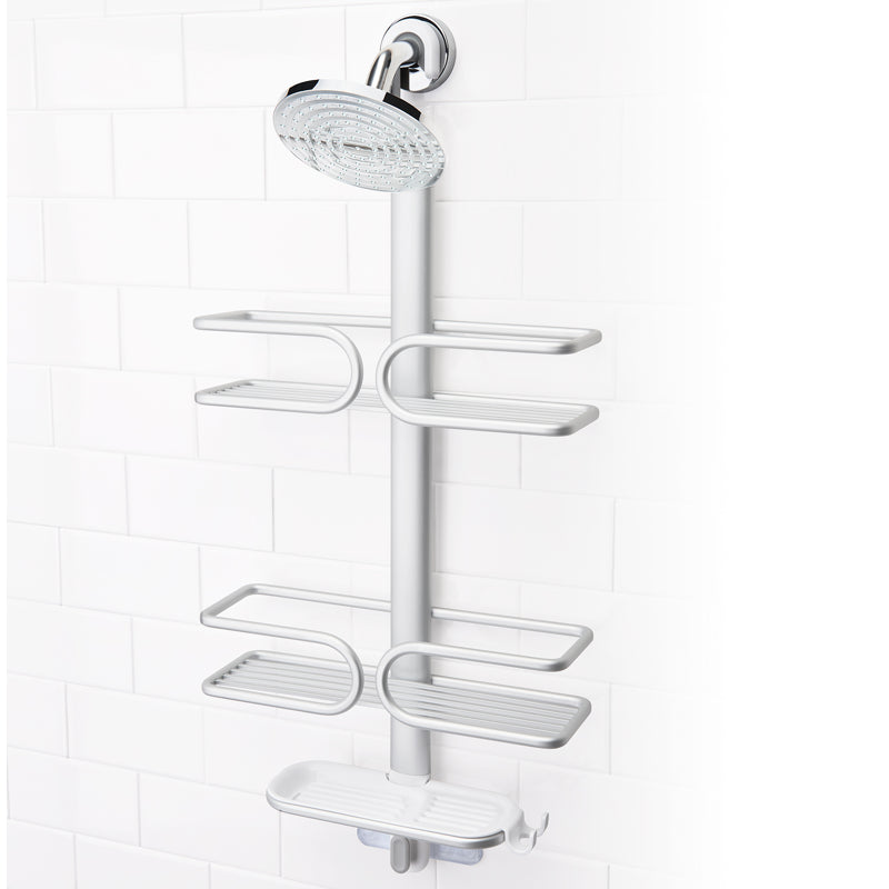 - 3-tier Shower Caddy, 31.5 x 9 x 71cm H (12.5 x 3.5 x 28" H), aluminum.