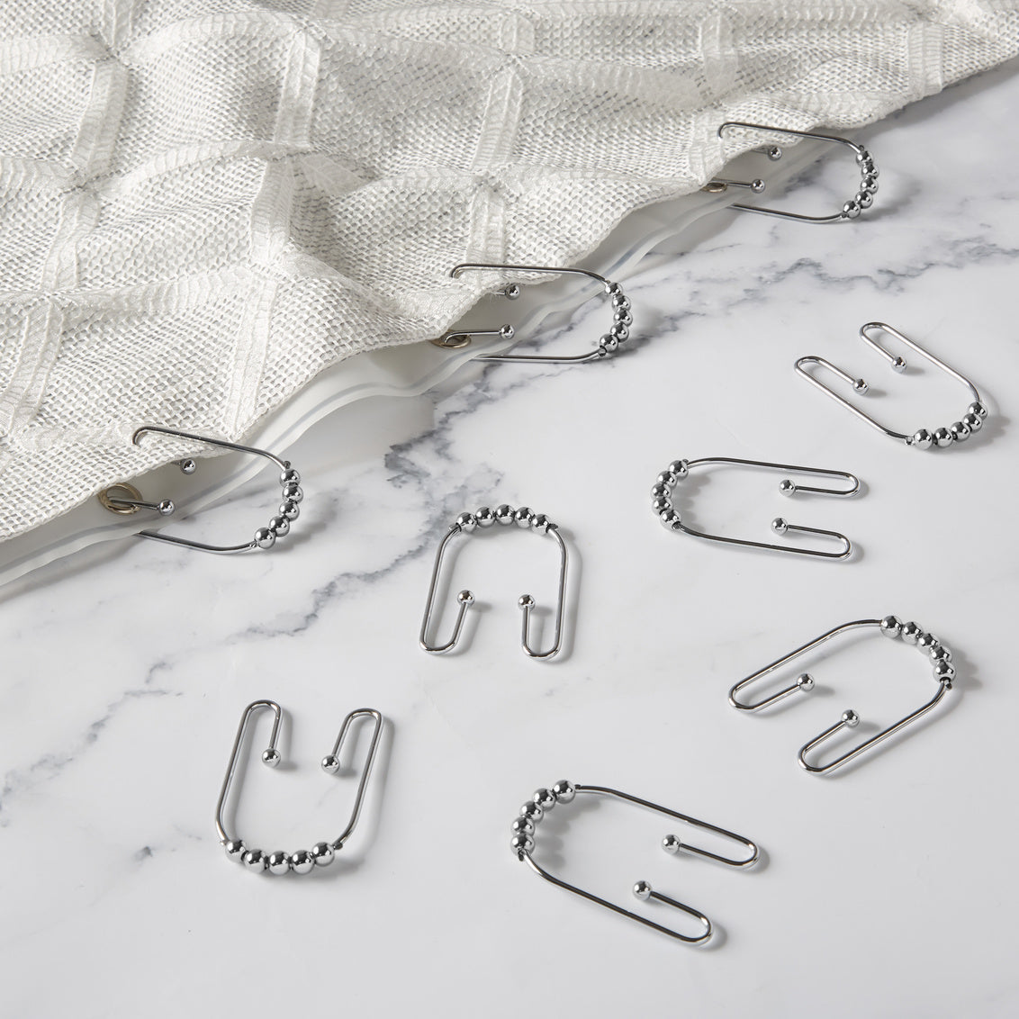 - Each hook features a double hook system, allowing you to hang the shower curtain and liner separately for easy installation and removal.