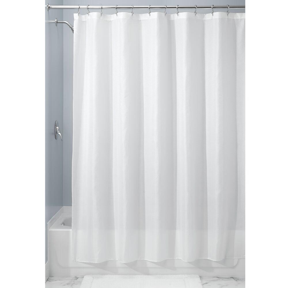 This fast-drying, 100% polyester shower curtain is high-quality, mildew and mold resistant, non-toxic and PVC free, family safe and durable, allowing you to use it for years to come. This waffle weave pattern white shower curtain brings the look of luxury to any bathroom, and will look great in your master bathroom, kid's bath, college dorm, basement bathroom and the guest bathroom. When it is time to freshen up, simply toss the shower curtain into the washing machine and tumble-dry low for a quick and easy clean that is wrinkle-free.