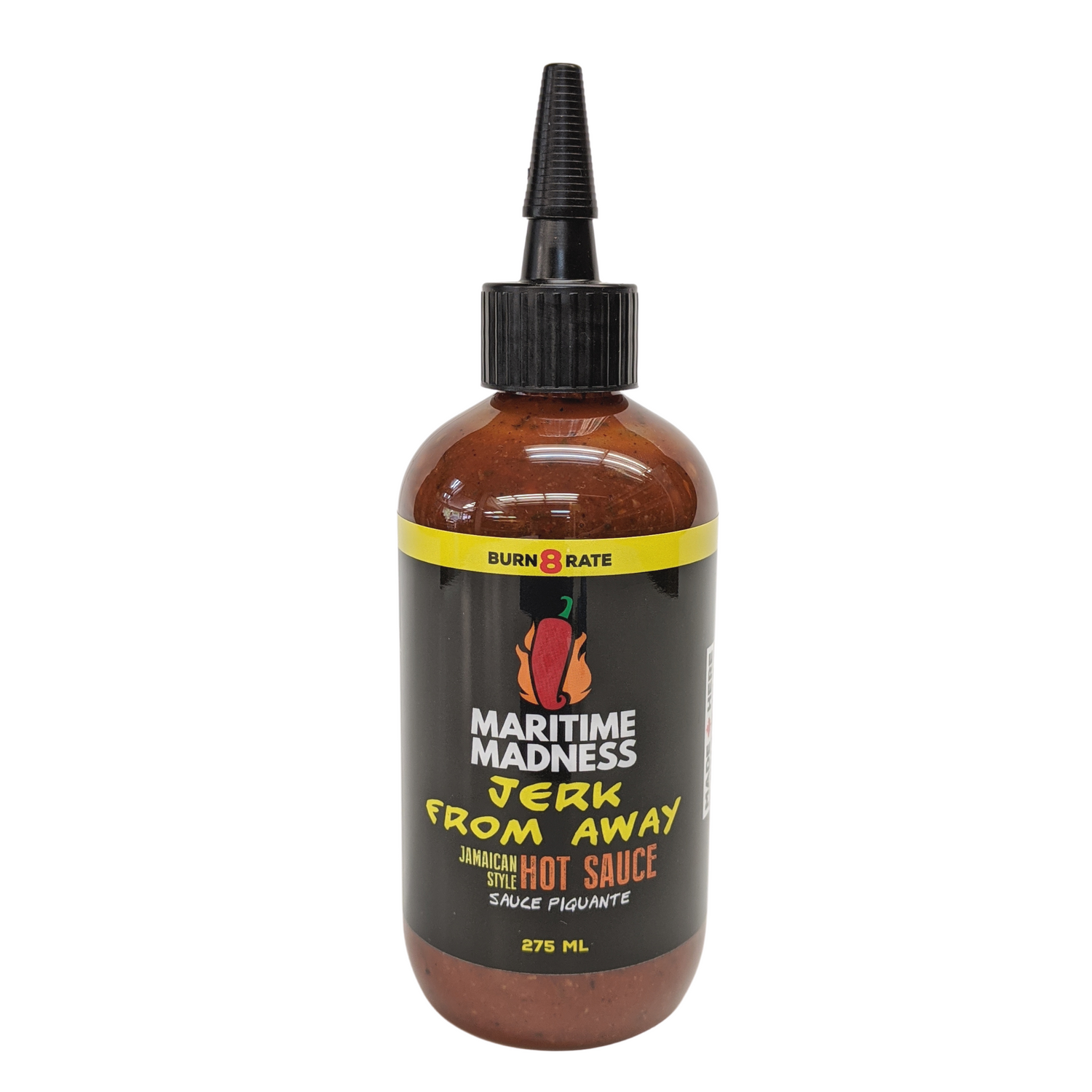 Jerk From Away: The Ultimate Hot Sauce for Chicken and Pork Lovers! Jerk From Away hot sauce by Maritime Madness is a beloved gem in our Classic Line, capturing the hearts and taste buds of hot sauce aficionados everywhere. Our expertly crafted blend of habaneros, herbs, and spices creates an explosion of flavours that will transport you straight to the islands. Get ready to embark on a culinary adventure like no other!