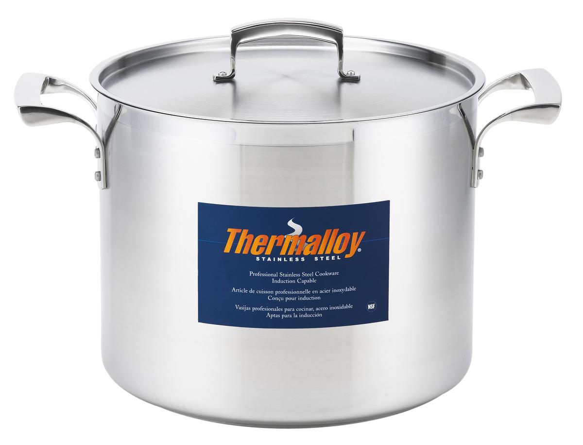 These deep stainless steel stock pots are perfect for making large batches of soups, sauces, stews, and much more. Stock pot and lid sold together