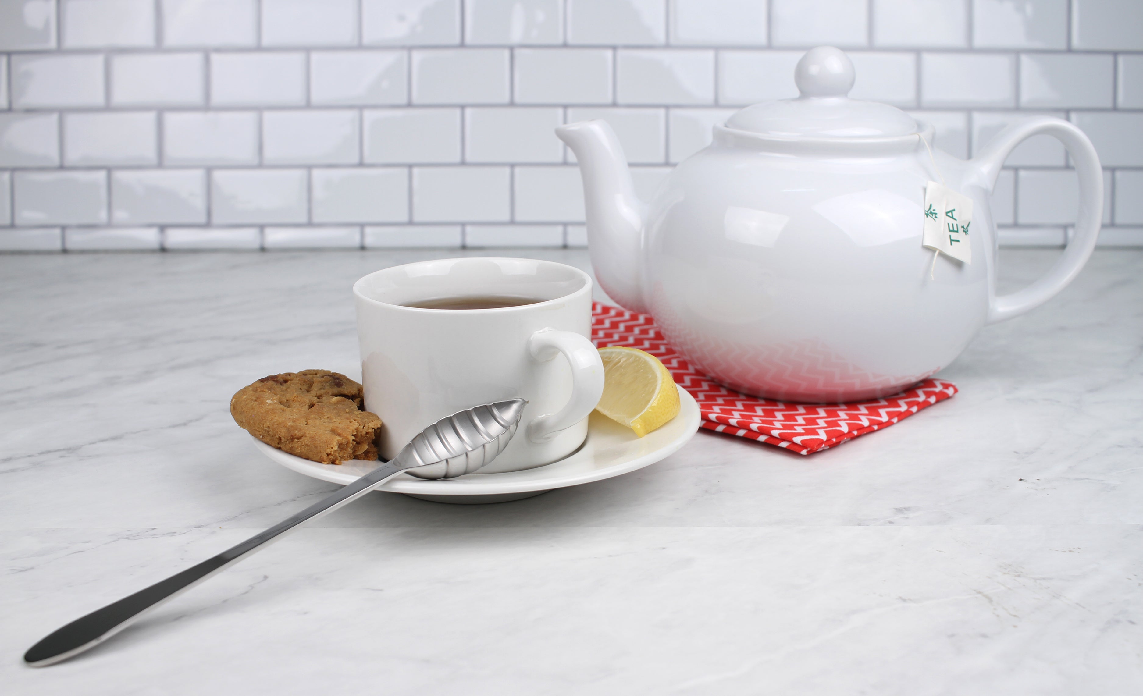 Generous 42 oz. capacity stoneware teapot has seamless one-piece construction and is lead free, microwave safe and dishwasher safe.