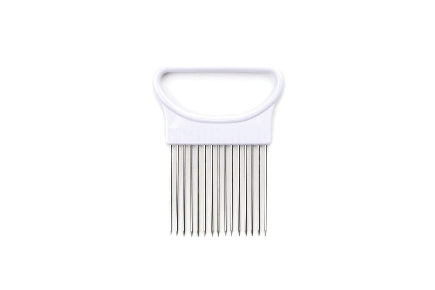 Stop fighting with the onion while trying to cut it. This onion holder will keep the onion straight for quick, easy and even slicing and will keep finger off the onion to reduce odour on your hands.