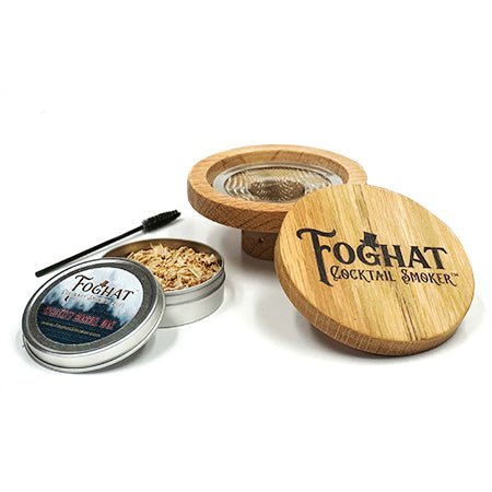 Transform your epicurean experience with the Foghat Cocktail Smoker. Infuse food, wine and spirits with all natural smoke flavours with a show-stopping display. Create captivating cocktails in a few easy steps: Prepare your favourite cocktail and place the Foghat Smoker on top of the glass. Add one of our flavoured, all natural, smoking fuels to the smoker. Secure steel mesh ember guard and ignite fuel. Place Foghat lid and watch the cascading waterfall of culinary smoke infuse into your drink. Includes: Foghat Smoker, ember guard, cleaning brush, Whiskey Barrel Oak Culinary Smoking Fuel.