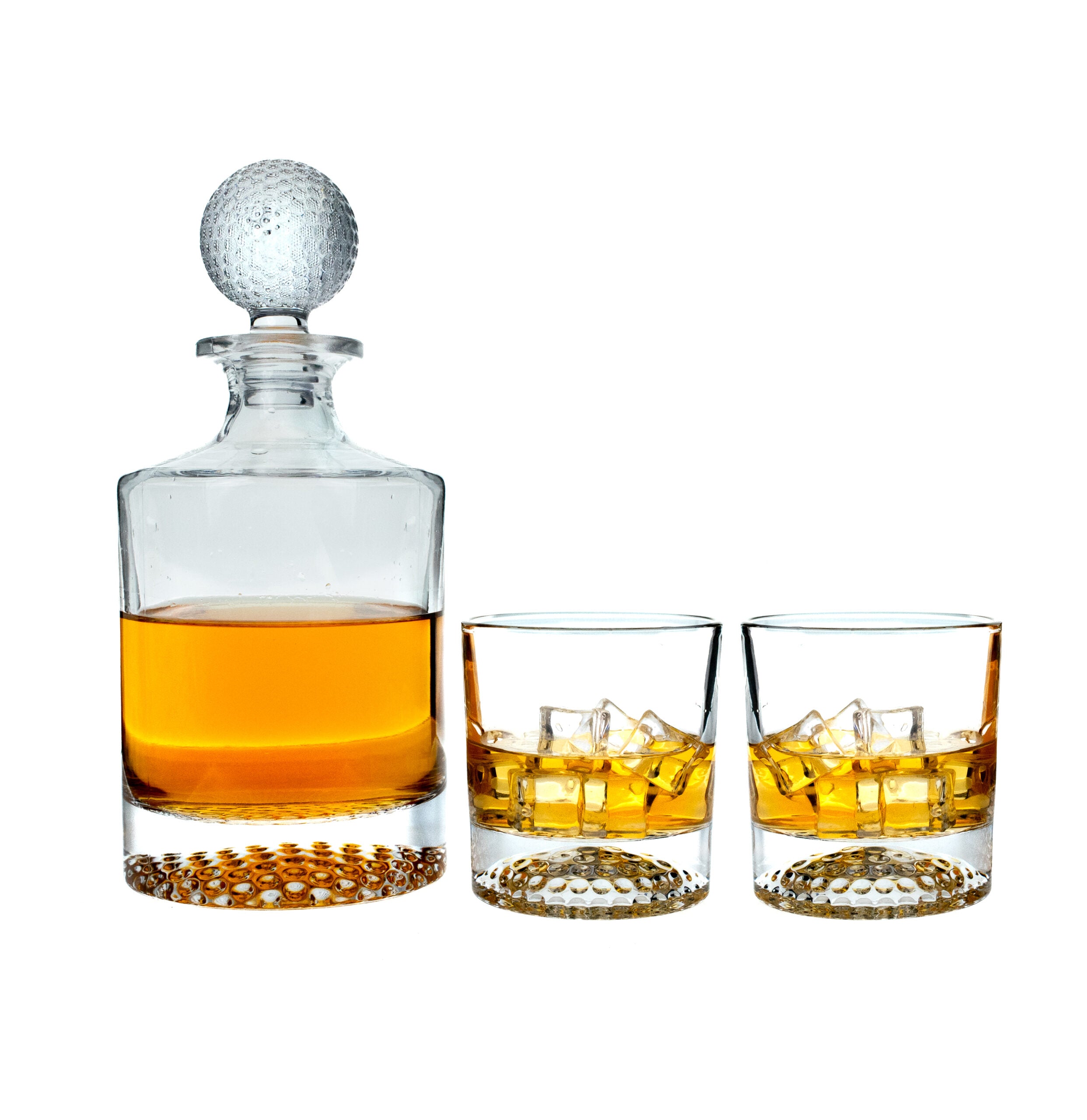 - Two matching glasses with elegant reflective golf ball-inspired base