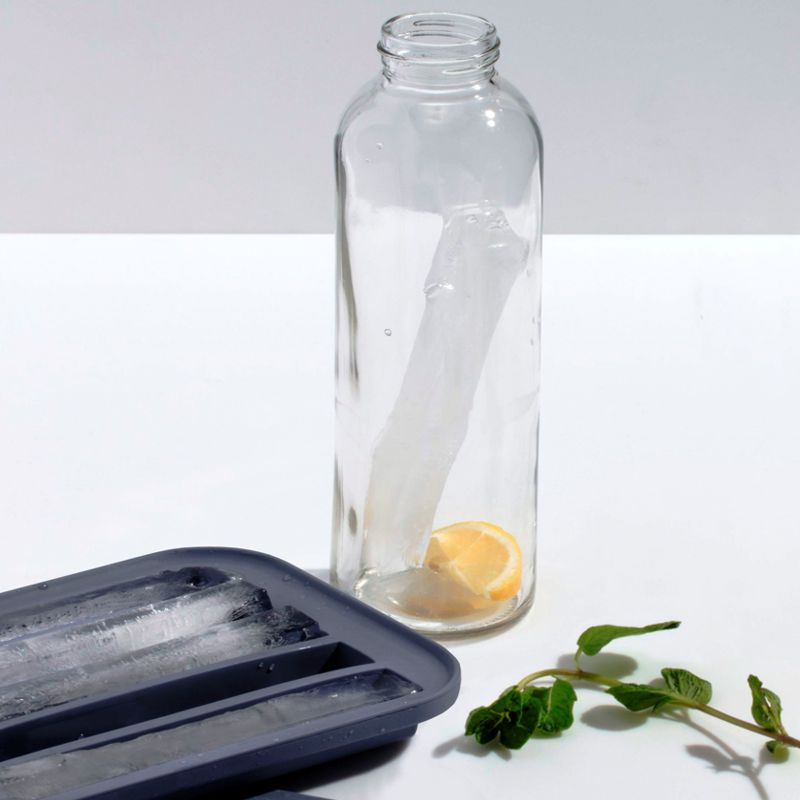 - Water Bottle Ice Tray, 14 x 19 x 2.5cm H (5.5 x 7.5 x 1" H), charcoal, silicone.