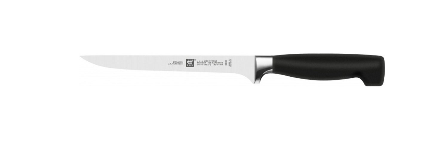 This 7-inch filet knife features a long, thin, flexible blade for precision trimming when separating meat from bones and joints.