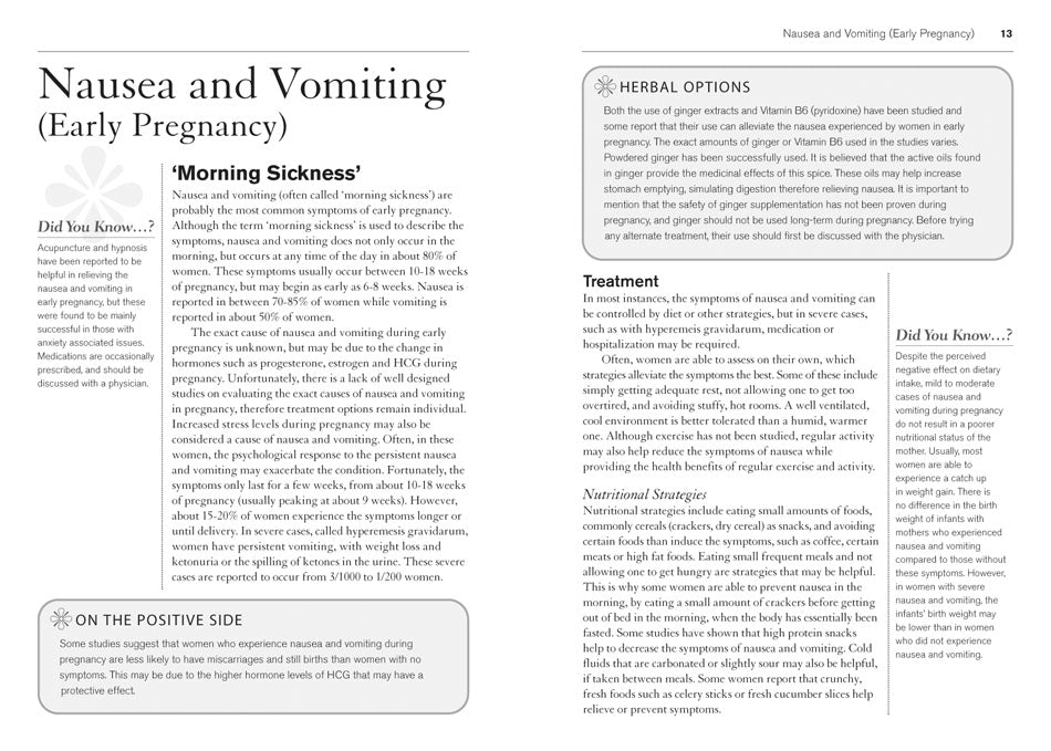 The second half of the book features 125 recipes ideally suited to expectant mothers. Each recipe has a complete nutrient analysis plus there are handy meal plans and Snacks on the Go that help prevent nausea and vomiting. Every page of the nutrition section is packed with tips, sidebars, recommendations, and common-sense guidelines presented in easy-to-use tables and charts.