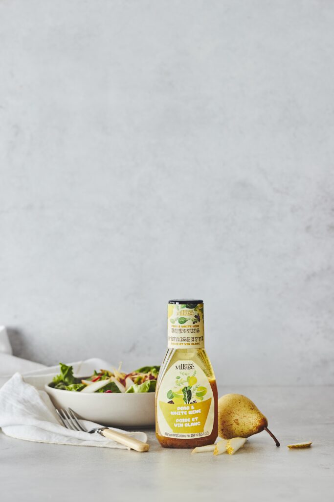 A well-balanced flavor of sweet Pear with subtle hints of white Chablis wine. This is a light and crisp salad dressing that lends itself to a simple yet elegant lettuce salad, think of adding goat cheese or caramelized pecans, so delicious.