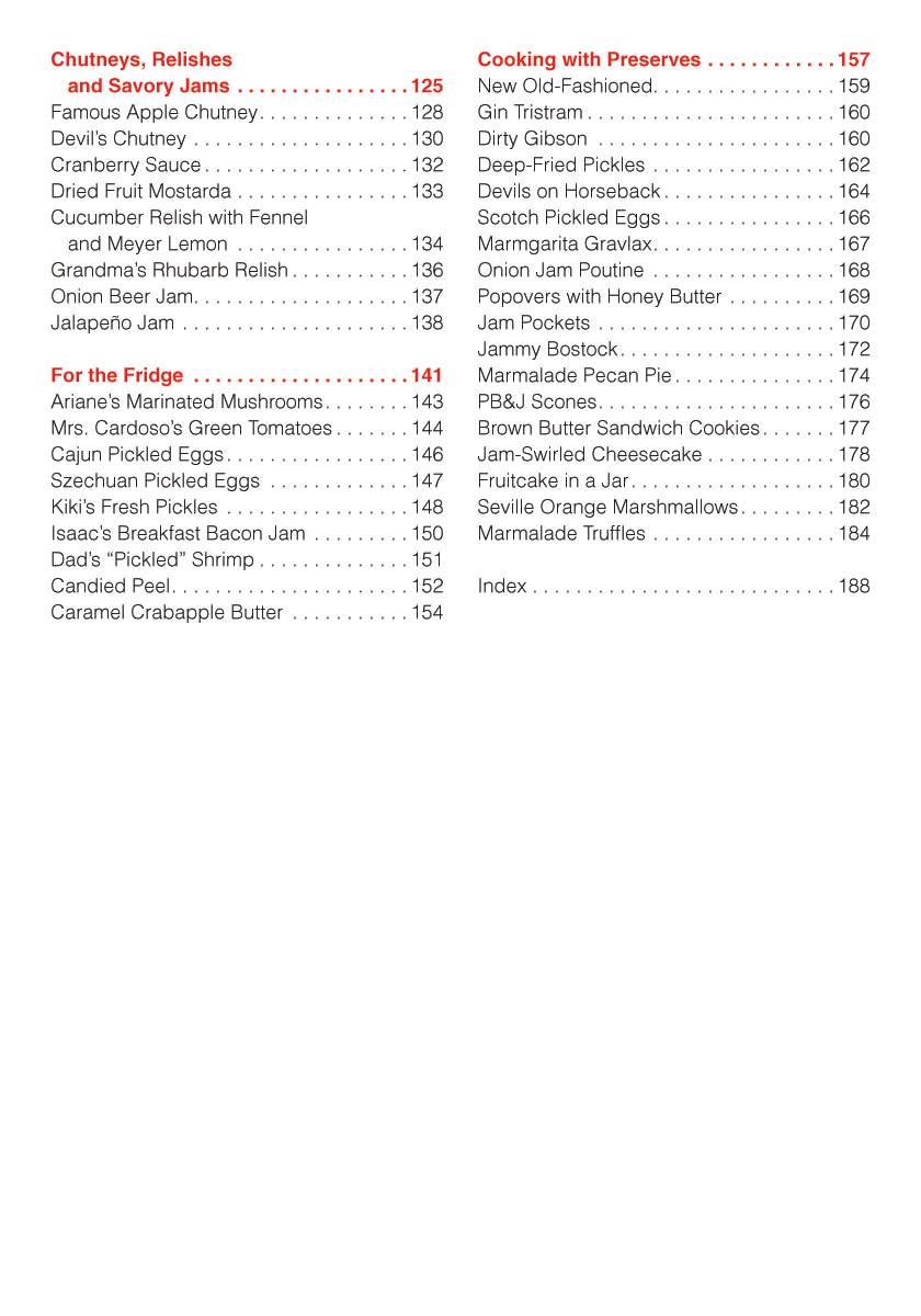 Besides the sumptuous jam, jelly and marmalade recipes, there are recipes for syrups, marinades, chutneys, conserves, as well as a dozen recipes that use the original preserve recipe.
