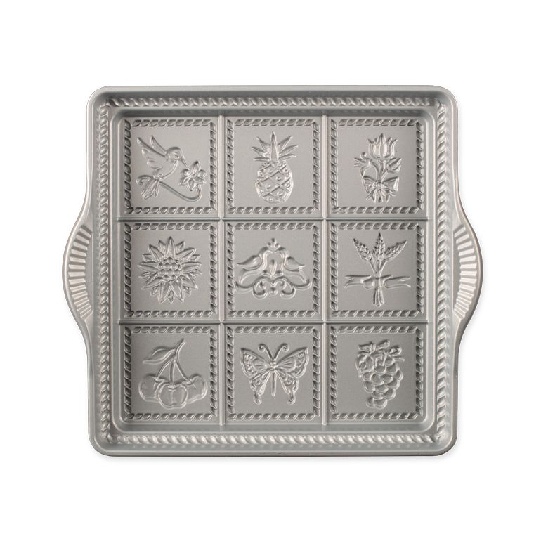 Nine flower and fruit designs are created when you bake with this shortbread pan. the sweet, crisp, buttery treats will melt in your mouth!