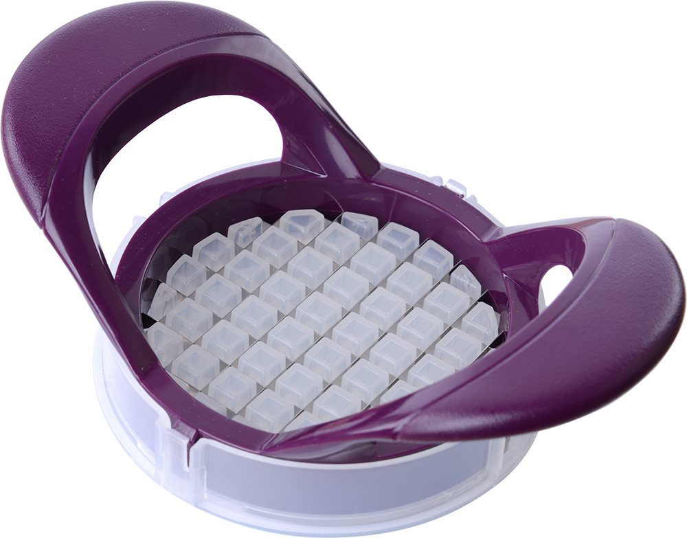 Chop onions fast and keep those tears at bay. Simply place half an onion on your cutting board and push down. Just one swift (but firm) motion and voila, you'll have safely, efficiently and perfectly diced onions. For large quantity preparation, place cutter over pusher plate and press down to clear all the onions from the blades quickly and safely. Pusher plate base doubles as a blade guard for safe storage.