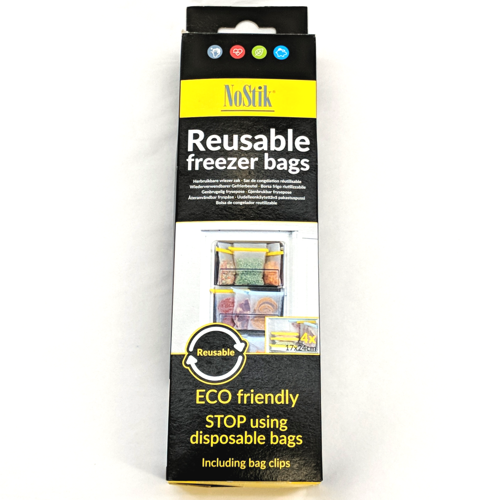 REUSABLE FREEZER BAG W/CLIP - 4PC SET Each bag includes a bag clip to ensure a tight fit. Temperature resistant from -72 to 260°C / -96 to 500°F • Non toxic • BPA free • Phthalate free • Made in Belgium • Reusable • Non-stick • Easy to clean