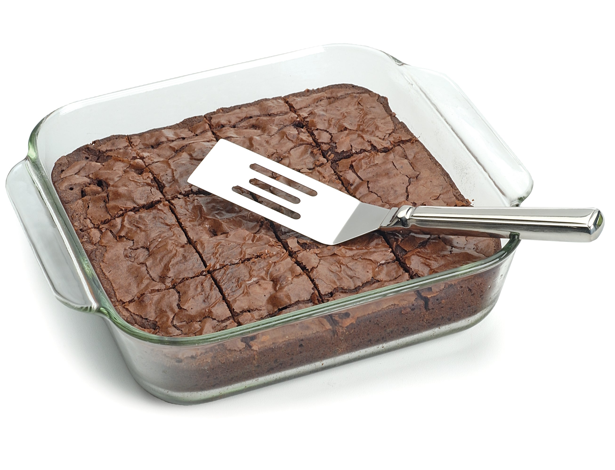 This attractive stainless steel spatula is precisely the right size and shape for cutting and serving up decadent brownie squares and portions of sheet cake. We crafted this kitchen gadget after a favorite hand me down wooden spatula, with updated design for better durability and a modern look! The highly polished 18/8 stainless steel spatula makes it right at home at the dinner table or buffet. It is dishwasher safe with an 8-1/2″ overall length.