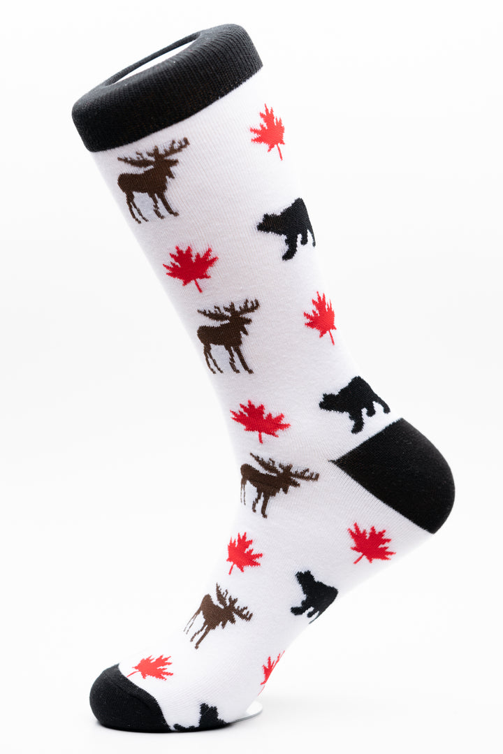 Can it get any more Canadian? Yes of course! With our fun crew socks featuring the Canadian Moose, Maple Leaf and the Bear you'll feel more Canadian. Awesome socks designed from the heart here in Canada.