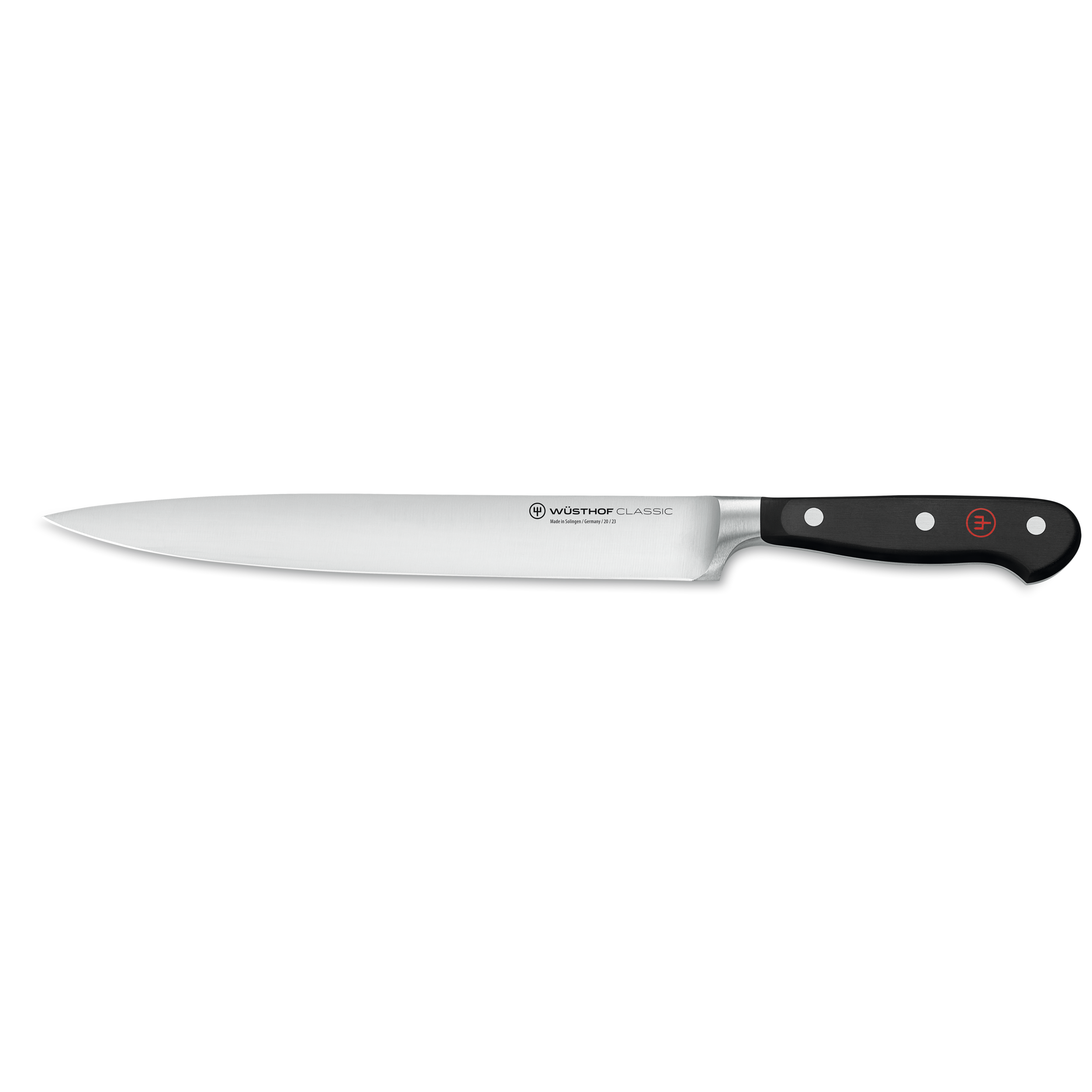The extra-sharp WÜSTHOF Classic 9" Carving Knife has a longer, narrower blade than a chef's knife. The increased surface area of the blade allows for clean, even slicing and a higher level of maneuverability. The pointed tip of the knife is designed to help guide meat away from the bone for effortless carving with minimal waste.