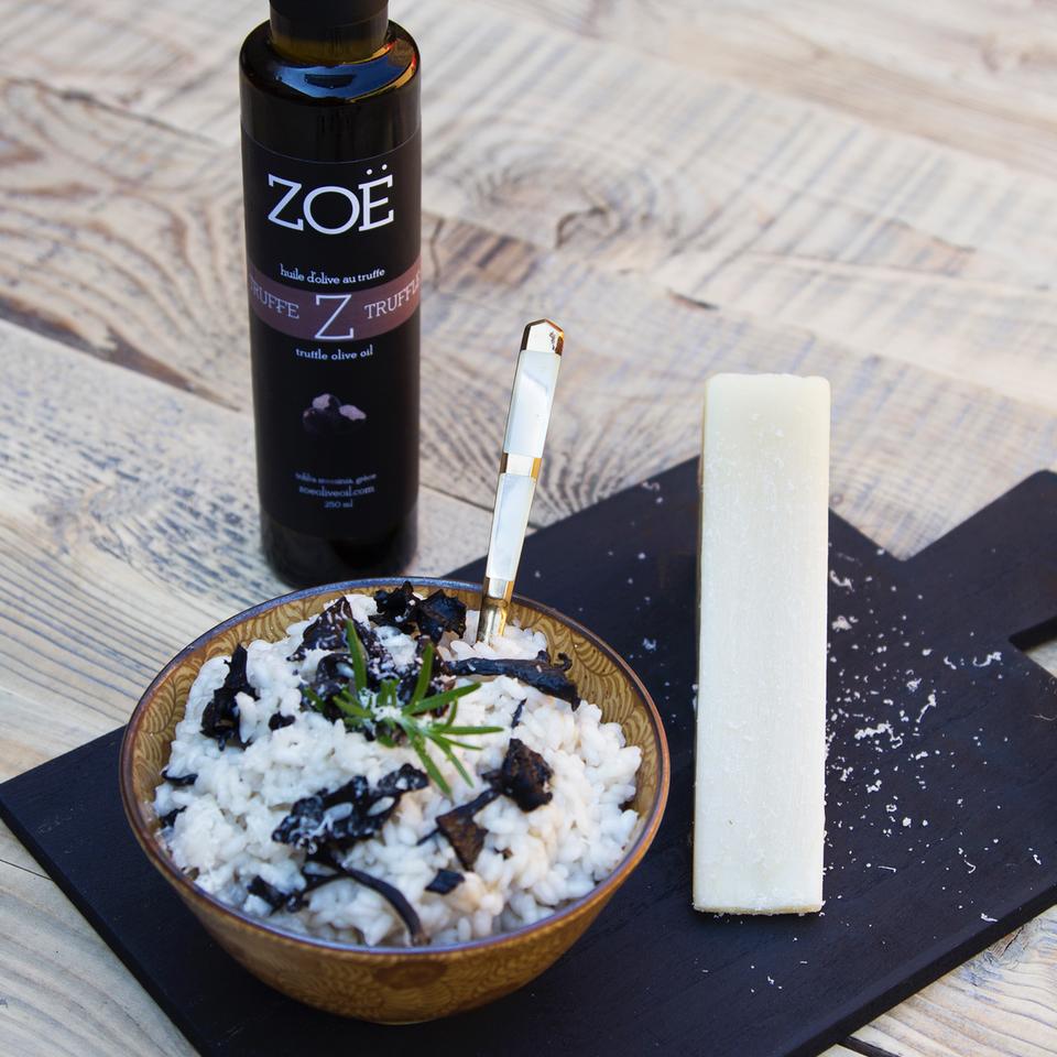Zoë koroneiki olives are gently infused together with truffle releasing its distinct aromas and oils. The flavour of the truffle combined with the peppery freshness of the extra virgin olive oil is delightful. This oil is especially flavourful with roasted or grilled vegetables, meat, risotto, goat cheese, eggs and chicken.